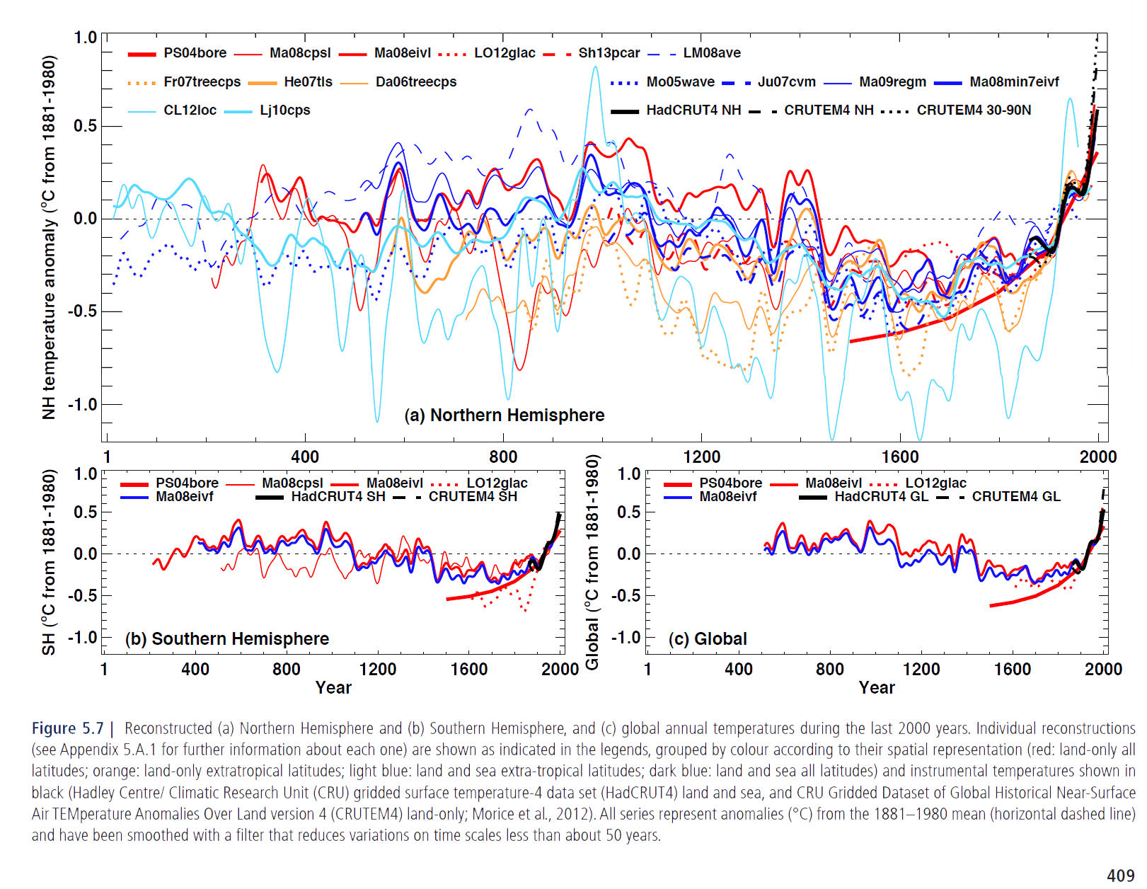 Temperature anomalies reconstructed. IPCC AR5 report, Chapter 5.