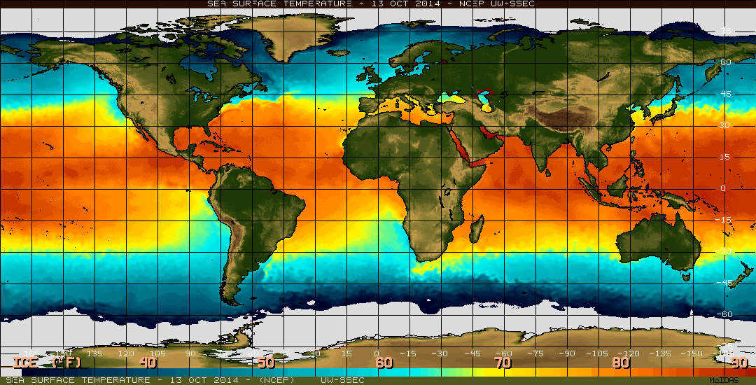 Sea Surface Temperature on June 23, 2014. Source: www.ssec.wisc.edu/data/sst/